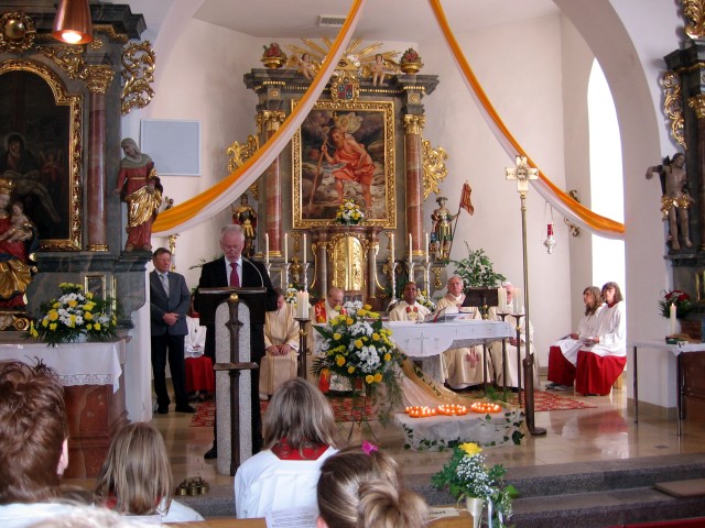 Damit ein großes Ereignis wie das 300-jähriges Jubiläum der Weihe unserer Pfarrkirche ein gelungenes Fest wird werden viele ehrenamtliche Helfer gebraucht. Wir hatten das große Glück so viele helfende Hände zu haben. Unser Kirchenpfleger, Herr Josef Meckl, sagte allen ein herzliches Vergelt’s. Die Festtage sind ohne Ihre Teilnahme nicht vollkommen.”