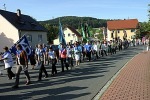 Kirchenzug zur ersten Kreuzweg-Station des Feld-Kreuzweges an der Dorfkapelle St. Georg