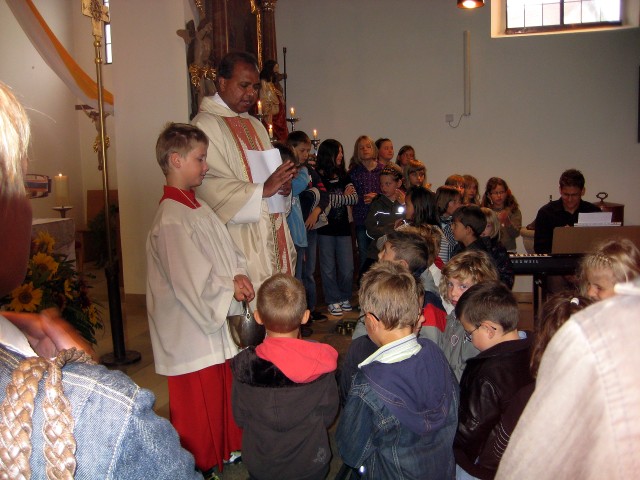 Pfarrer Antony Soosai segnete die Kinder und wünschte ihnen viel Freude zum Schulanfang und zum neuen Schuljahr.