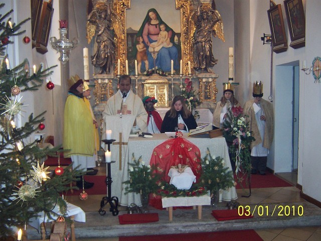 Anläßlich der Sternsingeraktion 2010 “Kinder finden neue Wege” haben die Sternsinger in der Pfarrkirche, Waldkirch und Neuenhammer die Gottesdienste mitgestaltet. Die diesjährige Sternsingeraktion ist für die Kinder in Senegal bestimmt. Für die Aktion wurde ein Betrag in Höhe von 1.391,83 € erziehlt. BGR Pfarrer Antony Soosai lobte die Sternsinger für ihr großes Engagement. Ein herzliches Vergelt’s Gott sagte er auch dem Arbeitskreis der Ministranten, unter Leitung von Frau Elisabeth Woppmann, Schwester Bonita, Schwester Margot, den Mesnerinnen und Mesnern für die Mithilfe bei der Vorbereitung und Durchführung der Sternsingeraktion, sowie den Eltern für die Fahrtdienste.