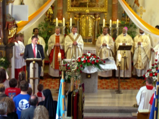 Pfarrer Antony Soosai freute sich sichtlich sehr, dass Bischof Lourdes Daniel, Prodekan Pfarrer Marek Baron, Pater Alfons Tony, Pfarrer Clatton Sackarias, Pfarrer John Peter und Pfarrer Selvaraj den Fest- und Dankgottesdienst in der Pfarrkirche mit zelebrierten. Er wurde von den Ministrantinnen und Ministranten mit Ihrem Arbeitskreis, unter Leitung von Frau Annette Reber, mit bewegenden Worten und einem Geburtstagslied in seiner Heimatsprache Tamil begrüßt. In seiner Predigt sprach Prodekan Pfarrer Marek Baron: „Ein guter Hirte ist der größte Schatz, den Gott einer Pfarrei gewähren kann.“ Musikalisch wurde der Gottesdienst vom Kirchenchor, unter Leitung von Herrn Reinhold Schultes, sowie von der Organistin Frau Theresa Frischholz, von herrlichen Gesängen und einem Tamil-Lied gestaltet.