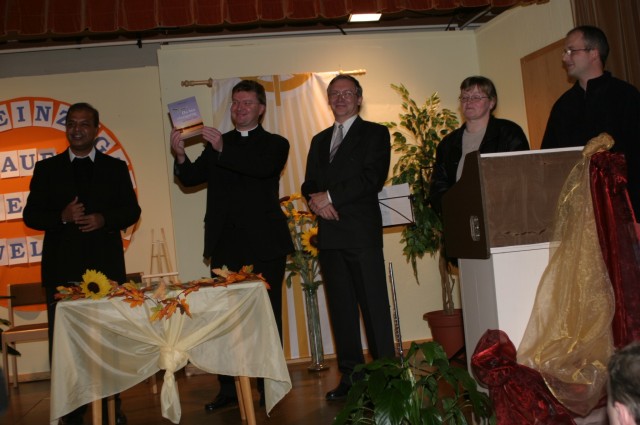 Der Kirchenpfleger Herr Josef Meckl, Schwester Oberin Bonita, Herr Horst Heider, Herr Thomas Ebnet (Vorsitzender des Vereins Hoffnung für Menschen e.V.) und Herr Holger Osgyan lasen aus dem Buch vor und bezeichneten es als „Geschenk“ mit Lebensweisheiten für das Leben, Leitfaden zum Glücklichsein bzw. stellten die einfache Sprache heraus.
