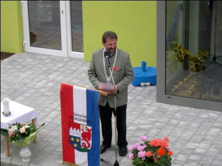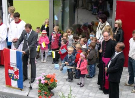 Nach der Einweihung der Kindertagesstätte durch Hochwürdigsten Herrn Diözesan-Caritasdirektor Domkapitular Msgr. Bernhard Piendl folgten Berichte vom Kirchenpfleger Herrn Josef Meckl, Herrn BGR Pfarrer Antony Soosai, dem Sprecher des PGR Herrn Bernhard Lang und Herrn Dipl.-Ing. Architekt Rudolf Meissner.