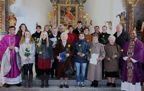 Ein herzliches Vergelt’s Gott sagten BGR Pfarrer Antony Soosai und Pfarrvikar Anish George, im Namen der ganzen Pfarrgemeinde den Mitgliedern des Kirchenchores, unter Leitung von Herrn Reinhold Schultes, beim Gottesdienst am Sonntag, 27. November um 9.00 Uhr in der Pfarrkirche. Seit vielen Jahren gestaltet der Kirchenchor in unserer Pfarrei die Gottesdienste mit wunderschönen Gesängen zur Ehre Gottes und zum Wohl der Mitmenschen. “Wir sind froh und dankbar, dass wir sie haben”, sprach BGR Pfarrer Antony Soosai. Auch der Sprecher des Pfarrgemeinderates, Herr Bernhard Lang, würdigte die Verdienste des Kirchenchores.