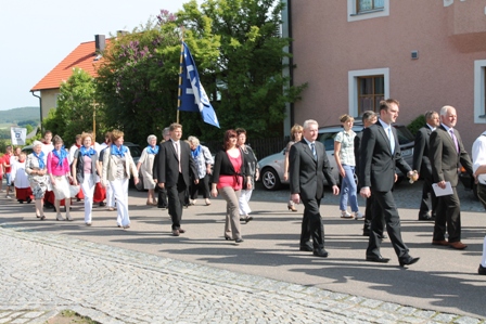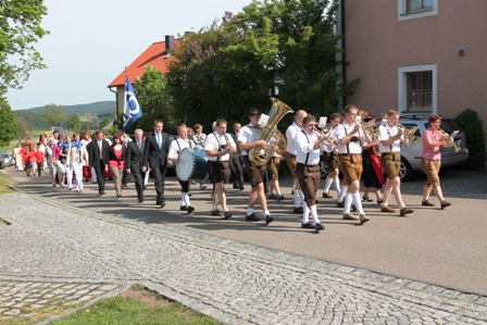 Nach der Abholung des Jubilars, BGR PfAdm. Antony Soosai fand der Kirchenzug zur Pfarrkirche mit der Kirchenverwaltung Neukirchen und Waldkirch, dem Pfarrgemeinderat, dem Gemeinderat, zahlreichen Vereinen und Verbänden, Behörden, usw., den Ministrantinnen und Ministranten und der Blaskapelle Waldkirch, statt.