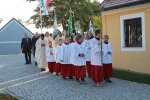 Am Eingang der Pfarrkirche wurde Pfarradministrator Pater Anish George von den Kindern unserer KITA mit ihren Erzieherinnen und Kinderpflegerinnen begrüßt. In der Pfarrkirche dankten ihm die Ministrantinnen und Ministranten mit Blumen.