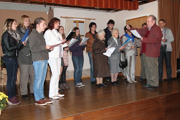 Beim anschließenden Stehempfang im Pfarrheim Neukirchen zu St. Christoph überreichte Frau Monika Adomat, Mitglied der Kirchenverwaltung, ein Fotobuch mit Erinnerungsfotos.
