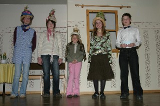 Bei der Pfarrversammlung gab es nicht nur “trockene Berichte”, sondern auch jede Menge Unterhaltsames. Das deutete sich bereits an, als die Messdiener/innen eine “Lesung aus dem Buche Soosai” zum Besten gaben und ankündigten: “Die Kollekte fällt jetzt aus, weil gesammelt wird, bevor ihr geht nach Haus’.” Für Lacher sorgte auch der Kurzsketch “Schwester Bonita und Rosalinde”, die sich wunderte, warum der Tee denn noch heiß sei, obwohl ihn Pfarrer Antony Soosai doch von Indien mitgebracht habe. “Die Frau von Welt wünscht sich pro Jahr zwei Hüte, das ist doch klar.” Die Ankündigung von Johannes Haider setzten dann vier Models um und präsentierten bei der Modenschau die Kreationen “Küchenstolz”, “Wolleria”, “Eduscho” und “Kanari”. Beifall erhielt nicht zuletzt der Kirchenchor unter der Leitung von Reinhold Schultes für seine Lieder.