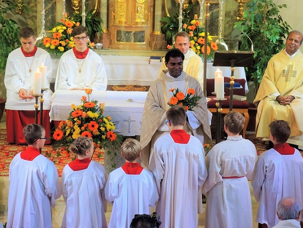 Beim feierlichen Gottesdienst um 16.00 Uhr in der Pfarrkirche wurde unser neuer Seelsorger Pfarrer John Robert Julius Johnrose von Herrn Dekan Stadtpfarrer Alexander Hösl in sein Amt eingeführt.