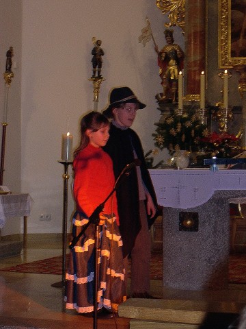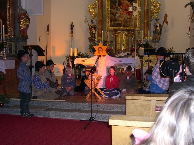 Die Kinder der Grundschule haben mit dem Krippenspiel, alle Teilnehmer, in der überfüllten Pfarrkirche, nach Betlehem zurück versetzt, wo ein Kind für uns geboren wurde.