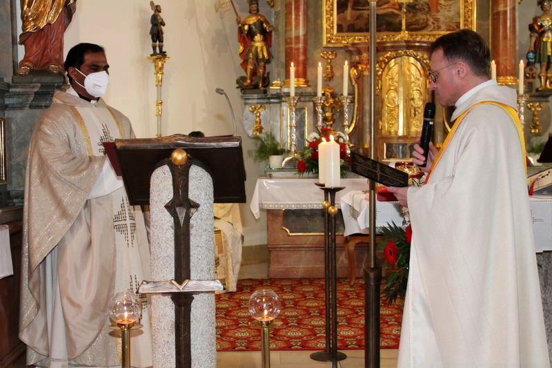 Beim feierlichen Gottesdienst am 23.01.2022 um 15.00 Uhr in der Pfarrkirche wurde unser neuer Seelsorger Pfarrer Pater John Subash Vincent von Herrn Dekan BGR Stadtpfarrer Alexander Hösl in sein Amt eingeführt. Herr Pfarrer Pater John Subash Vincent ist bereits seit September 2021 in unserer Pfarrei und ist wegen seiner Offenheit und Symphathie sehr beliebt in unserer Pfarrei.