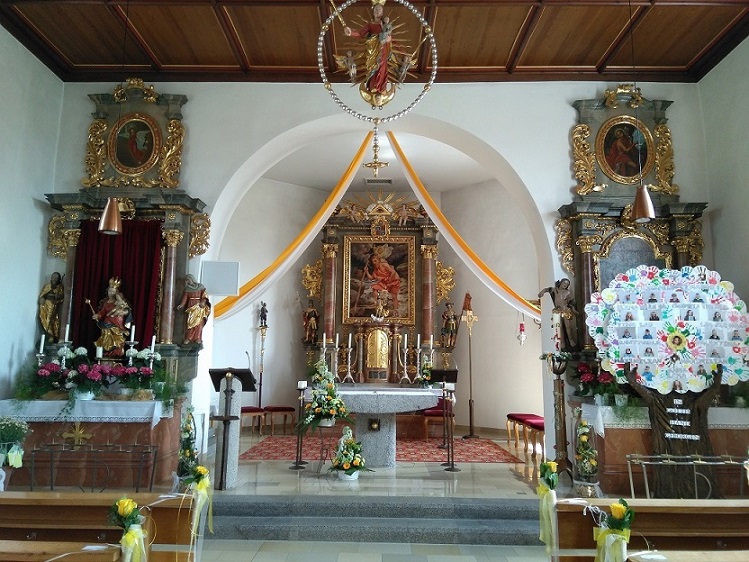 reitung der Erstkommunionkinder im Religionsunterricht, dem Lehrerkollegium für die Unterstützung, den Tischmüttern für die Mitarbeit bei der Vorbereitung in den Tischgruppen und für das herrliche Plakat zum Thema „In Gottes Hand geborgen“, Frau Christine Maurer mit dem Team für den wunderschönen Kirchenschmuck, allen Eltern für die großartige Unterstützung und Vorbereitungen beim Beichtfest und für die würdevolle Mitgestaltung des Gottesdienstes und der Dankandacht, Schwester Bonita und Schwester Margot für die Mithilfe und Mitarbeit bei der außerschulischen Vorbereitung in den Tischgruppen und im Unterricht sowie für den Mesnerdienst und den Ministrantinnen und Ministranten für den Altardienst. Dem Sprecher des Pfarrgemeinderates Herrn Bernhard Lang danke ich für die Begrüßung der Erstkommunionkinder und Überbringung der Glückwünsche der Pfarrgemeinde. Ebenso danke ich Frau Katharina Merther für das Fotographieren, Herrn Matthias Scheibl für das Filmen und Herrn Josef Pilfusek, der Presse.