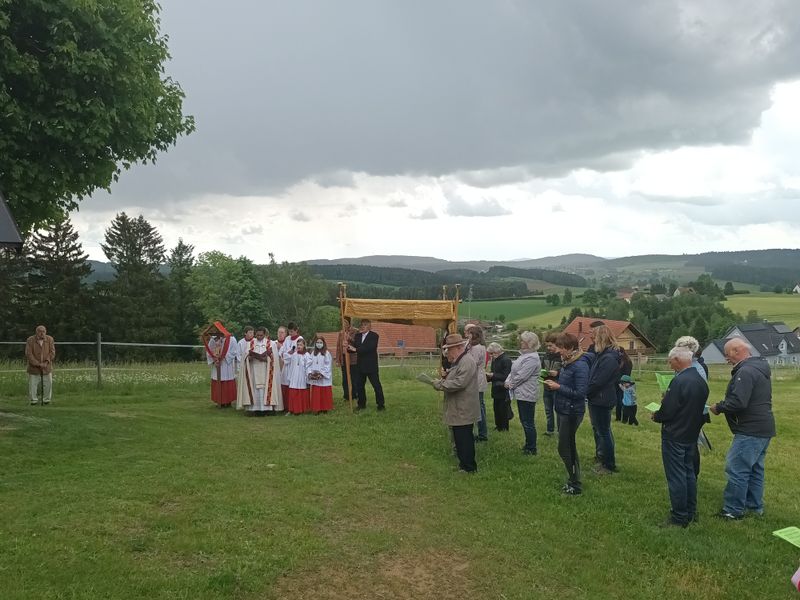 Ich danke allen, die bei der Vorbereitung und der Durchführung mitgeholfen haben. Besonders danke ich Ihnen, liebe Pfarrangehörige, dass Sie so zahlreich gekommen sind und so würdig den Gottesdienst und die Flurprozession feierlich mitgestaltet haben.