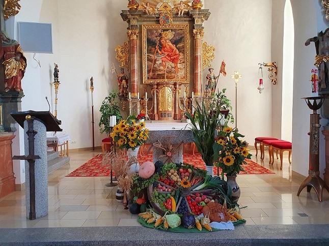 Am Samstag, 30.09. und Sonntag, 01.10.2021 haben wir das Erntedankfest mit würdevollen Gottesdiensten gefeiert. Ein herzliches Vergelt‘s Gott den Mesnerinnen und dem Mesner, der Kirchenverwaltung Waldkirch, den Minis aus Neuenhammer mit ihrem Arbeitskreis, der KLJB-Neukirchen zu St. Christoph, der KLJB-Waldkirch und allen die bei der Vorbereitung und beim Aufbau der herrlichen Erntedankaltäre in der Pfarrkirche und in den Filialkirchen in Waldkirch und Neuenhammer mitgeholfen haben. Ein herzliches Vergelt’s Gott.