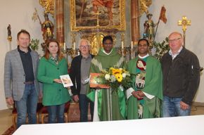 Bei der Vorabendmesse am 07.10.2023 um 19.00 Uhr in der Pfarrkirche haben unser Kirchenpfleger Herr Josef Meckl und unser Sprecher des Pfarrgemeinderates Herr Bernhard Lang unseren Pfarrvikar Amaidhi Arasu Kulandaisamy mit einem Blumenstrauß und einem Kirchenführer begrüßt.