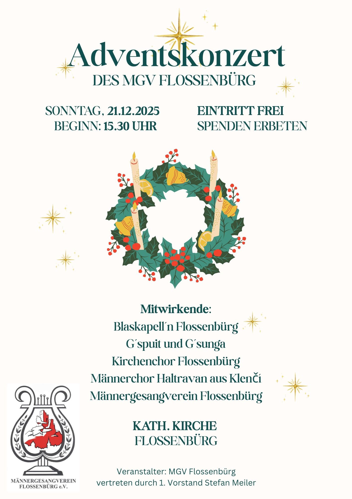 Adventskonzert des MGV Flossenbürg am 21.12.2025 um 15.30 Uhr in der Kath. Kirche Flossenbürg