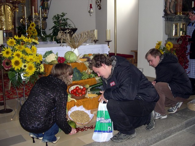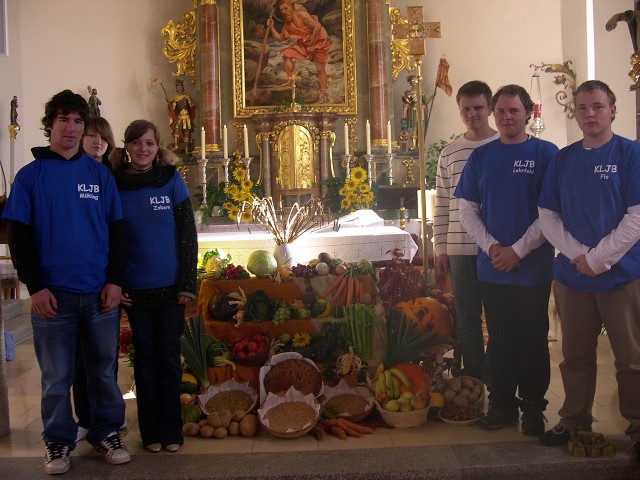 Im Staunen über die Ernte dieses Jahres und in der Dankbarkeit für die menschlichen Kräfte und Talente feierten wir am Sonntag, den 05. Oktober um 9.00 Uhr das Erntedankfest in der Pfarrkirche. Ein herzliches Vergelt’s Gott an unsere KLJB-Neukirchen zu St. Christoph, mit Ihrem Vorsitzenden Herrn Johannes Lehrfeld, die den Erntedankaltar mit Körnern, Obst und Gemüse kunstvoll aufgebaut und auch den Gottesdienst feierlich mitgestaltet haben. Was wir ernten und was wir mit unseren vielfältigen Kräften und Talenten schaffen, ist nicht einfach zufällig und selbstverständlich, es ist Geschenk Gottes. Darum dankten wir in dieser Feier Gott für all das Wertvolle unseres Lebens, für die Gaben der Erde, für unsere Fähigkeiten, für jeden Gruß, alles Lächeln, jegliche Sanftmut und für jeden Menschen, der uns gern hat. In all dem erkennen wir Gottes Antlitz, oder besser gesagt, etwas von seiner Liebe und Sorge um uns Menschen. Denn darum geht es an Erntedank. Wenn wir es nicht für uns behalten, sondern nach Jesus Lebensart teilen und uns einsetzen für andere, dann vermehrt es sich und wird zu einer Kraftquelle, die nie versiegt.